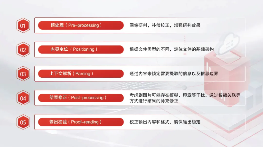 对授信调查报告自动生成场景相关文本进行内容提取所涉及的内容包罗万象,而且标注样本稀缺,传统OCR技术难以完全覆盖。因此,华夏银行使用预训练视觉编码器将图片转换为数字特征,并与语言指令相结合作为大模型输入,利用图像本身具有的多标签语义信息,为现有无标签数据样本提供新的伪标签无监督标注方法,该方法不仅提高了特征表达能力,还为下游图文检索任务和分类任务提供基础。在此基础上,华夏银行结合上下文信息构建了多模态模型,并应用“5P”框架(如图2所示)进行内容提取,以支持高效的信息识别与处理。