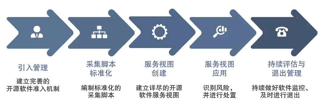 开源软件的引入和使用是一个动态、持续的管理过程。尤其面对金融科技的持续发展与金融业务的不断变化,金融机构需要持续做好开源软件评估工作,并及时识别、解决软件使用过程中可能存在的问题,切实保障业务系统的安全、合规与稳定运行;此外,当开源软件不能满足业务需求、出现合规风险或者已经影响业务系统对外服务时,还需要及时做好开源软件的退出、归档、知识转移等工作。